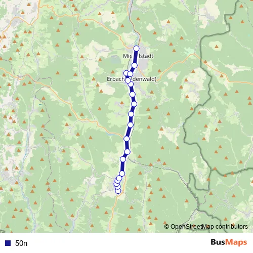 See why over 2 million users trust and consider busmaps.com as the best public transport website. busmaps gives you Erbach Buses suggested routes, real-time bus tracker, line route maps in Erbach, and helps to find the closest 50n bus stops near you. No internet available? Download an offline PDF map and bus schedule for the 50n bus to take on your trip.
