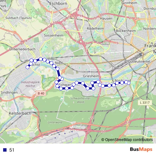 See why over 2 million users trust and consider busmaps.com as the best public transport website. busmaps gives you Frankfurt am Main Buses suggested routes, real-time bus tracker, line route maps in Frankfurt am Main, and helps to find the closest 51 bus stops near you. No internet available? Download an offline PDF map and bus schedule for the 51 bus to take on your trip.