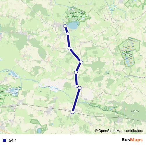 The first stop of the 542 bus route is Bad Bederkesa Moor-Therme (1) and the last stop is