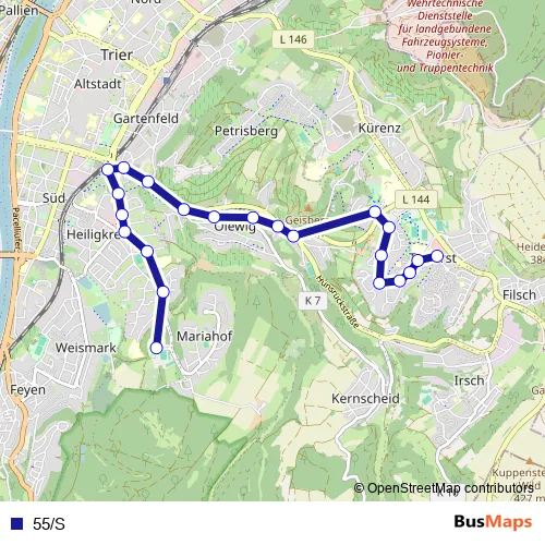 Augustinusstraße - Am Trimmelter Hof - Heinrich-Lübke-Straße - Hunsrückstraße - Riesling-Weinstraße - Olewiger Straße - Spitzmühle - Metzer Allee - Hans-Böckler-Allee - Berliner Allee - Montessoriweg