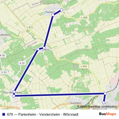 Click here to view the nearest 678 - Partenheim - Vendersheim - Wörrstadt bus stop.