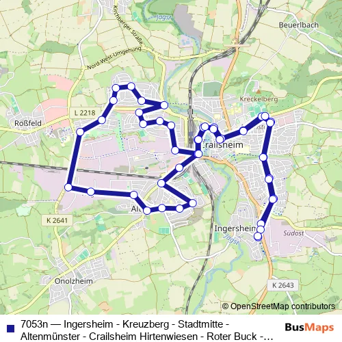 7053n (Ingersheim - Kreuzberg - Stadtmitte - Altenmünster - Crailsheim Hirtenwiesen - Roter Buck - Sauerbrunnen - Stadtmitte - Kreuzberg - Ingersheim) Bus in Crailsheim