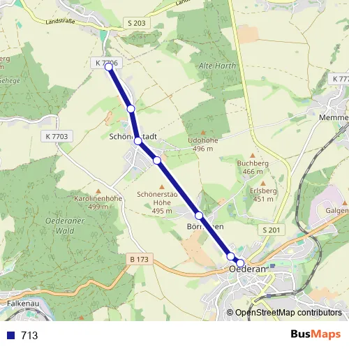 See why over 2 million users trust and consider busmaps.com as the best public transport website. busmaps gives you Oederan Buses suggested routes, real-time bus tracker, line route maps in Oederan, and helps to find the closest 713 bus stops near you. No internet available? Download an offline PDF map and bus schedule for the 713 bus to take on your trip.