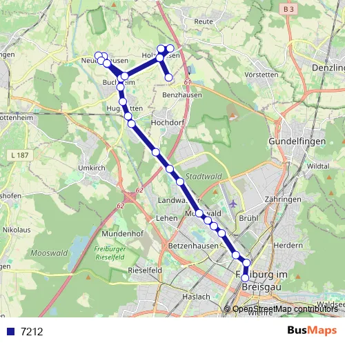 See why over 2 million users trust and consider busmaps.com as the best public transport website. busmaps gives you Freiburg Buses suggested routes, real-time bus tracker, line route maps in Freiburg, and helps to find the closest 7212 bus stops near you. No internet available? Download an offline PDF map and bus schedule for the 7212 bus to take on your trip.
