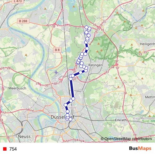 See why over 2 million users trust and consider busmaps.com as the best public transport website. busmaps gives you Duesseldorf Buses suggested routes, real-time bus tracker, line route maps in Duesseldorf, and helps to find the closest 754 bus stops near you. No internet available? Download an offline PDF map and bus schedule for the 754 bus to take on your trip.