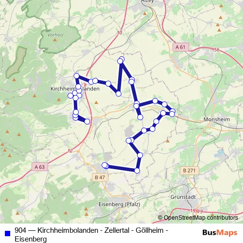 Click here to view the nearest 904 - Kirchheimbolanden - Zellertal - Göllheim - Eisenberg bus stop.