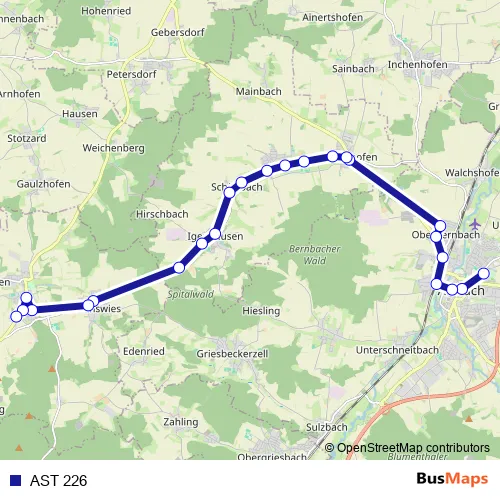 See why over 2 million users trust and consider busmaps.com as the best public transport website. busmaps gives you Aichach Buses suggested routes, real-time bus tracker, line route maps in Aichach, and helps to find the closest AST 226 bus stops near you. No internet available? Download an offline PDF map and bus schedule for the AST 226 bus to take on your trip.