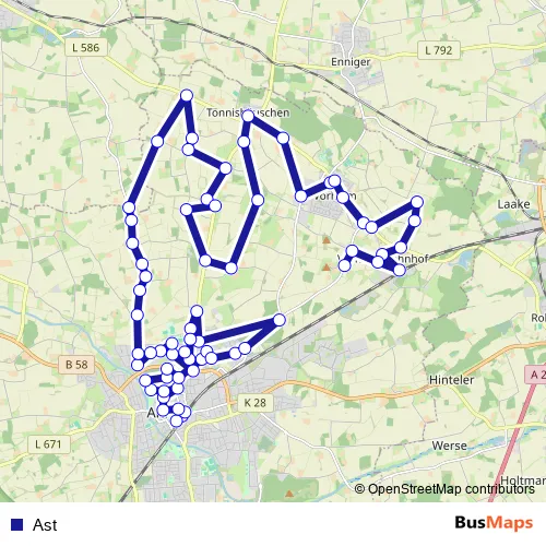 See why over 2 million users trust and consider busmaps.com as the best public transport website. busmaps gives you Ahlen Buses suggested routes, real-time bus tracker, line route maps in Ahlen, and helps to find the closest Ast bus stops near you. No internet available? Download an offline PDF map and bus schedule for the Ast bus to take on your trip.