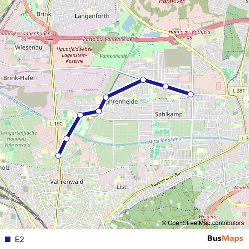 See why over 2 million users trust and consider busmaps.com as the best public transport website. busmaps gives you Hannover Trams suggested routes, real-time bus tracker, line route maps in Hannover, and helps to find the closest E2 tram stops near you. No internet available? Download an offline PDF map and bus schedule for the E2 tram to take on your trip.