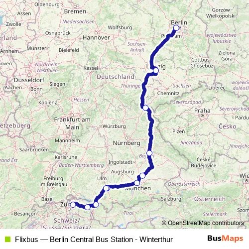 Прямое: Berlin Central Bus Station – Winterthur Lagerhausstrasse