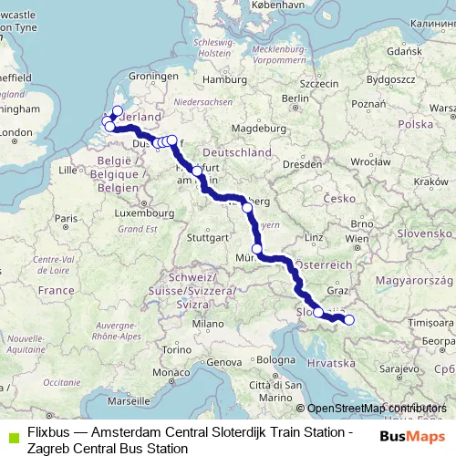 Bus Flixbus - Amsterdam Central Sloterdijk Train Station - Zagreb Central Bus Station Schedule in Ljubljana