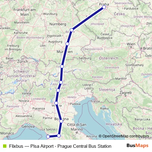 Bus Flixbus - Pisa Airport - Prague Central Bus Station: Full Schedule in Pisa