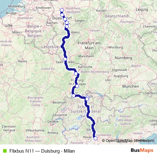 Прямое: Duisburg central train station – Milan (Lampugnano bus station)