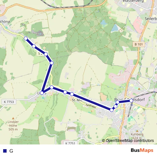 See why over 2 million users trust and consider busmaps.com as the best public transport website. busmaps gives you Freiberg Buses suggested routes, real-time bus tracker, line route maps in Freiberg, and helps to find the closest G bus stops near you. No internet available? Download an offline PDF map and bus schedule for the G bus to take on your trip.