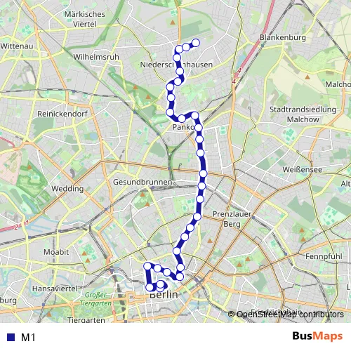 See why over 2 million users trust and consider busmaps.com as the best public transport website. busmaps gives you Berlin Trams suggested routes, real-time bus tracker, line route maps in Berlin, and helps to find the closest M1 tram stops near you. No internet available? Download an offline PDF map and bus schedule for the M1 tram to take on your trip.