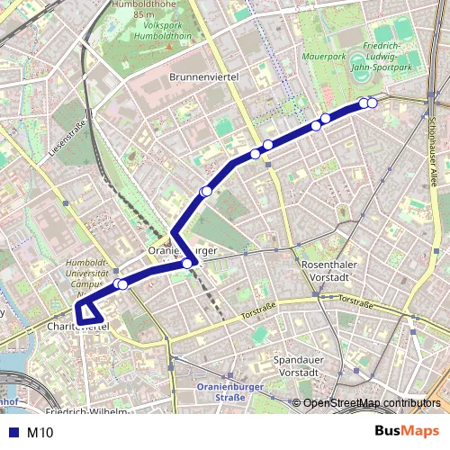 See why over 2 million users trust and consider busmaps.com as the best public transport website. busmaps gives you Berlin Buses suggested routes, real-time bus tracker, line route maps in Berlin, and helps to find the closest M10 bus stops near you. No internet available? Download an offline PDF map and bus schedule for the M10 bus to take on your trip.
