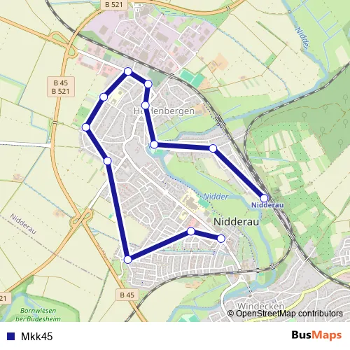 See why over 2 million users trust and consider busmaps.com as the best public transport website. busmaps gives you Nidderau Buses suggested routes, real-time bus tracker, line route maps in Nidderau, and helps to find the closest Mkk45 bus stops near you. No internet available? Download an offline PDF map and bus schedule for the Mkk45 bus to take on your trip.