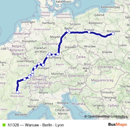Bus N1326 - Warsaw - Berlin - Lyon Schedule in Strasbourg