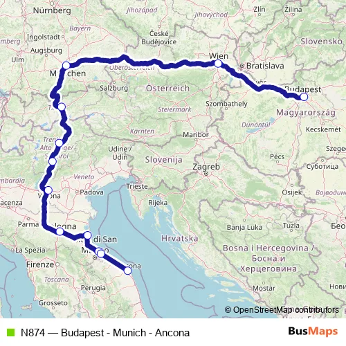 Обратное: Bologna (central bus station) – Budapest Népliget bus station