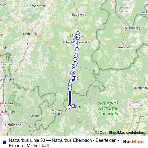 Click here to view the nearest Natourbus Linie 50 - Natourbus Eberbach - Beerfelden - Erbach - Michelstadt bus stop.