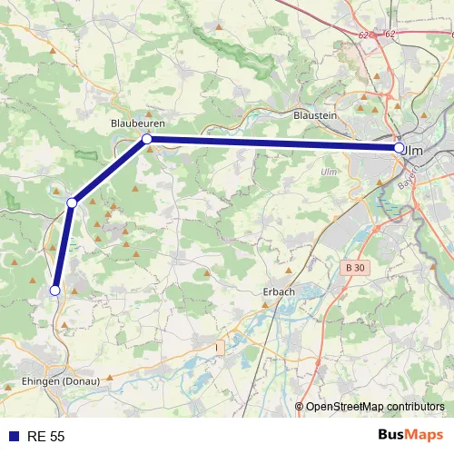 See why over 2 million users trust and consider busmaps.com as the best public transport website. busmaps gives you Schelklingen Rail Services suggested routes, real-time bus tracker, line route maps in Schelklingen, and helps to find the closest RE 55 rail stops near you. No internet available? Download an offline PDF map and bus schedule for the RE 55 rail to take on your trip.
