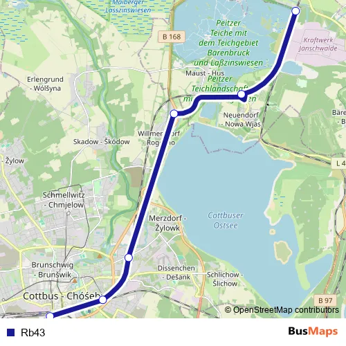 See why over 2 million users trust and consider busmaps.com as the best public transport website. busmaps gives you Cottbus Buses suggested routes, real-time bus tracker, line route maps in Cottbus, and helps to find the closest Rb43 bus stops near you. No internet available? Download an offline PDF map and bus schedule for the Rb43 bus to take on your trip.