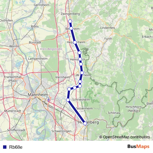 See why over 2 million users trust and consider busmaps.com as the best public transport website. busmaps gives you Darmstadt Buses suggested routes, real-time bus tracker, line route maps in Darmstadt, and helps to find the closest Rb68e bus stops near you. No internet available? Download an offline PDF map and bus schedule for the Rb68e bus to take on your trip.