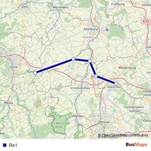 See why over 2 million users trust and consider busmaps.com as the best public transport website. busmaps gives you Schmoelln Buses suggested routes, real-time bus tracker, line route maps in Schmoelln, and helps to find the closest Re1 bus stops near you. No internet available? Download an offline PDF map and bus schedule for the Re1 bus to take on your trip.