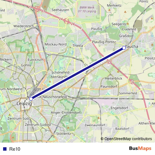 Taucha (b. Leipzig), S-Bahnhof (Bus). Re10 is operational during ежедневно.