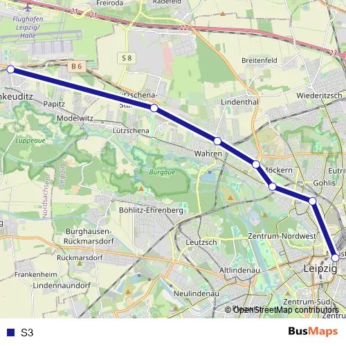 See why over 2 million users trust and consider busmaps.com as the best public transport website. busmaps gives you Leipzig Buses suggested routes, real-time bus tracker, line route maps in Leipzig, and helps to find the closest S3 bus stops near you. No internet available? Download an offline PDF map and bus schedule for the S3 bus to take on your trip.