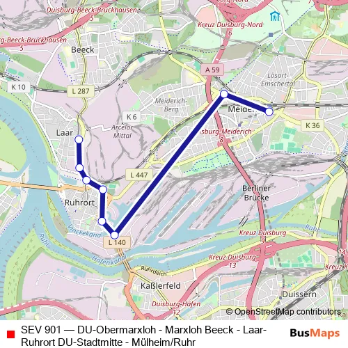 Click here to view the nearest SEV 901 - DU-Obermarxloh - Marxloh Beeck - Laar- Ruhrort DU-Stadtmitte - Mülheim/Ruhr bus stop.
