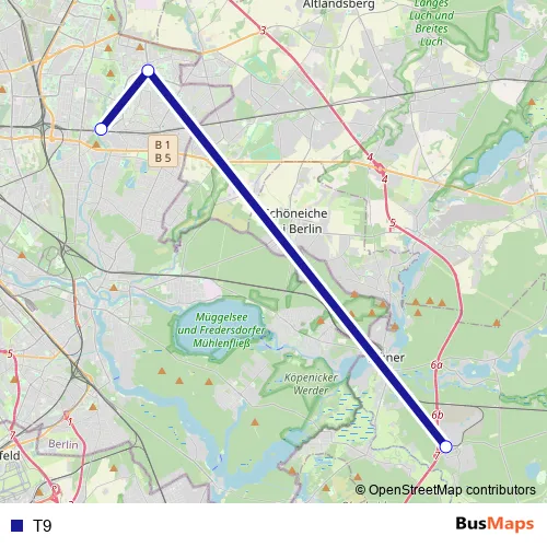 See why over 2 million users trust and consider busmaps.com as the best public transport website. busmaps gives you Berlin Buses suggested routes, real-time bus tracker, line route maps in Berlin, and helps to find the closest T9 bus stops near you. No internet available? Download an offline PDF map and bus schedule for the T9 bus to take on your trip.