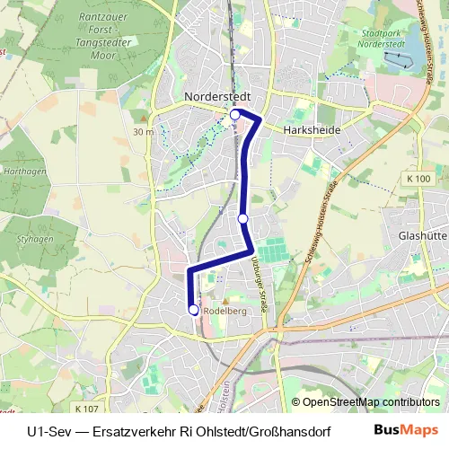 U A Norderstedt Mitte. U1-Sev (Ersatzverkehr Ri Ohlstedt/Großhansdorf) is operational during ежедневно.