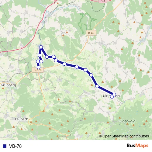 See why over 2 million users trust and consider busmaps.com as the best public transport website. busmaps gives you Ulrichstein Buses suggested routes, real-time bus tracker, line route maps in Ulrichstein, and helps to find the closest VB-78 bus stops near you. No internet available? Download an offline PDF map and bus schedule for the VB-78 bus to take on your trip.