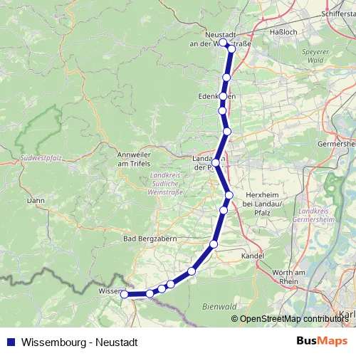 Additional information: Wissembourg - Neustadt has 15 stops and the total trip duration for this route is approximately 61 minutes.