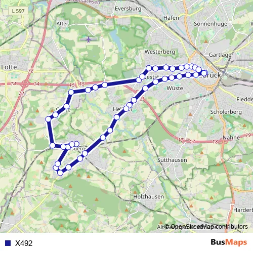 See why over 2 million users trust and consider busmaps.com as the best public transport website. busmaps gives you Osnabrueck Buses suggested routes, real-time bus tracker, line route maps in Osnabrueck, and helps to find the closest X492 bus stops near you. No internet available? Download an offline PDF map and bus schedule for the X492 bus to take on your trip.