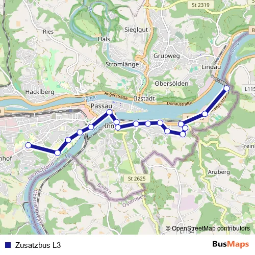 See why over 2 million users trust and consider busmaps.com as the best public transport website. busmaps gives you Passau Buses suggested routes, real-time bus tracker, line route maps in Passau, and helps to find the closest Zusatzbus L3 bus stops near you. No internet available? Download an offline PDF map and bus schedule for the Zusatzbus L3 bus to take on your trip.