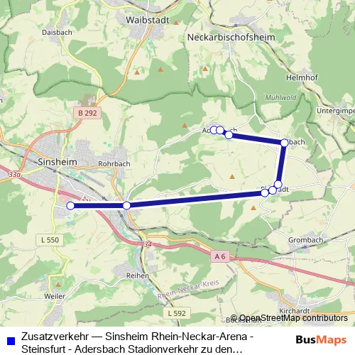 Bus Zusatzverkehr - Sinsheim Rhein-Neckar-Arena - Steinsfurt - Adersbach Stadionverkehr zu den Nachmittagsspielen der TSG Hoffenheim Schedule in Neckarbischofsheim