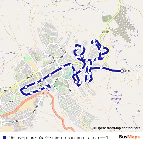 Bus 1 - ת. מרכזית ערד/רציפים-ערד<->מלון יפה נוף-ערד-1# in Arad: Stops & Timetable