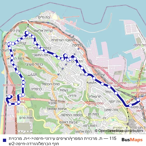 Bus 115 - ת. מרכזית המפרץ/רציפים עירוני-חיפה<->ת. מרכזית חוף הכרמל/הורדה-חיפה-2ש in Haifa: Stops & Timetable