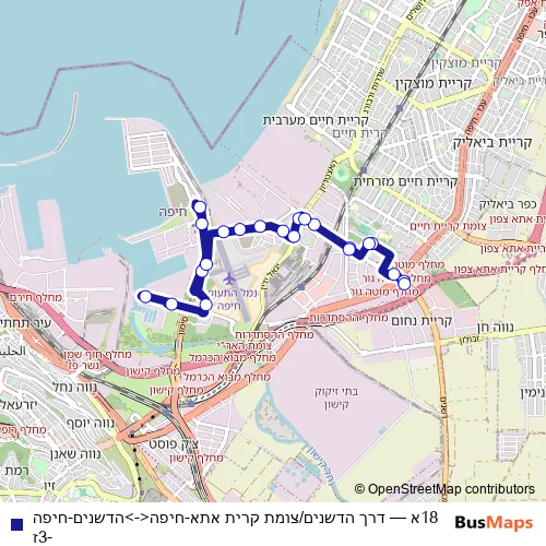 The first stop of the 18א bus route is דרך הדשנים/צומת קרית אתא and the last stop is הדשנים. 18א (דרך הדשנים/צומת קרית אתא-חיפה<->הדשנים-חיפה-3ז) is operational during ежедневно.