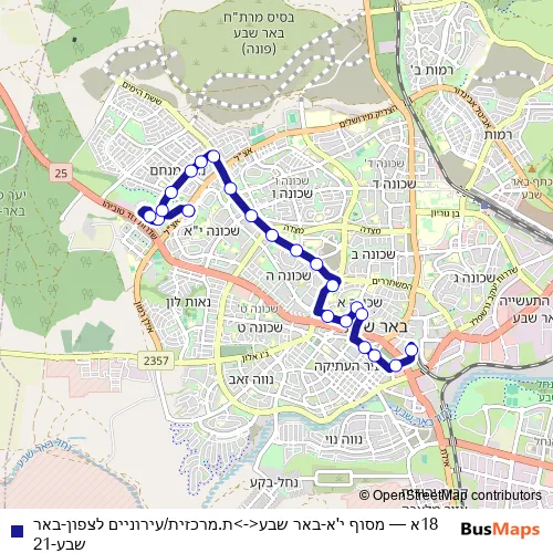 See why over 2 million users trust and consider busmaps.com as the best public transport website. busmaps gives you Beersheba Buses suggested routes, real-time bus tracker, line route maps in Beersheba, and helps to find the closest 18א bus stops near you. No internet available? Download an offline PDF map and bus schedule for the 18א bus to take on your trip.