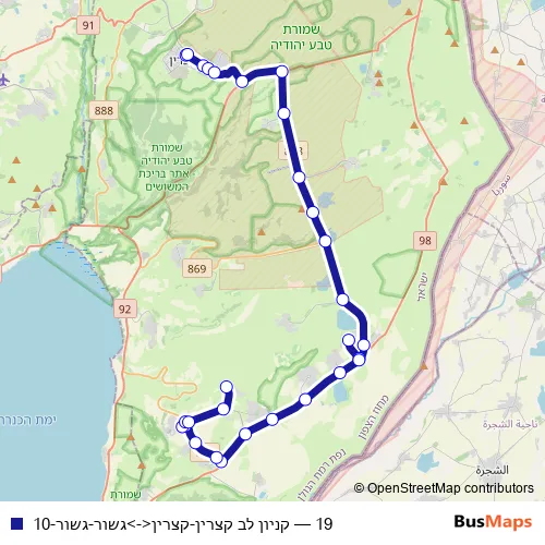 Bus 19 - קניון לב קצרין-קצרין<->גשור-גשור-10: Full Schedule in Fiq