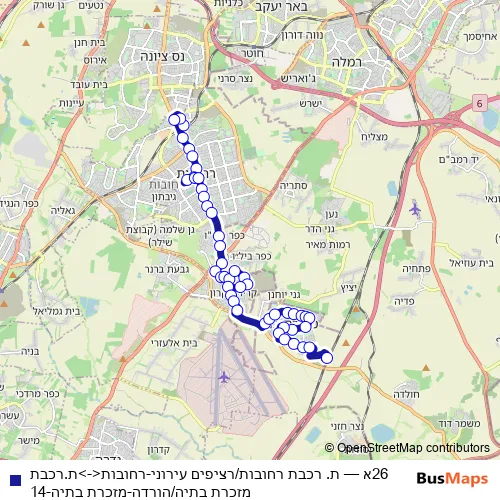 Bus 26א - ת. רכבת רחובות/רציפים עירוני-רחובות<->ת.רכבת מזכרת בתיה/הורדה-מזכרת בתיה-14 Schedule in Ramla