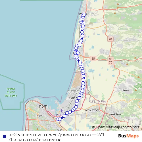 Bus 271 - ת. מרכזית המפרץ/רציפים בינעירוני-חיפה<->ת. מרכזית נהריה/הורדה-נהריה-1ז in Haifa: Stops & Timetable