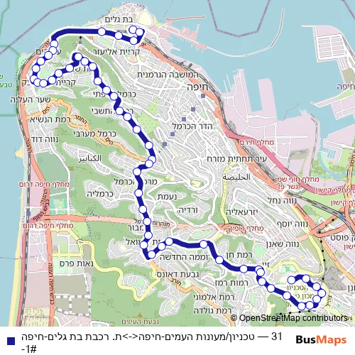 See why over 2 million users trust and consider busmaps.com as the best public transport website. busmaps gives you Haifa Buses suggested routes, real-time bus tracker, line route maps in Haifa, and helps to find the closest 31 bus stops near you. No internet available? Download an offline PDF map and bus schedule for the 31 bus to take on your trip.