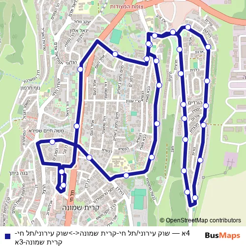 Bus 4א - שוק עירוני/תל חי-קרית שמונה<->שוק עירוני/תל חי-קרית שמונה-3א Schedule in QiryatShmona