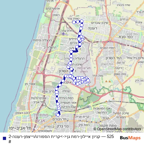 Bus 525 - קניון איילון-רמת גן<->קרית הספורט/וייצמן-רעננה-2# in Tel Aviv: Stops & Timetable
