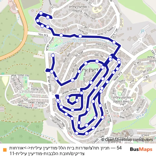 Bus 54 - חניון תח'צ/שדרות בית הלל-מודיעין עילית<->אורחות צדיקים/חובת הלבבות-מודיעין עילית-11: Full Schedule in Modiin Ilit