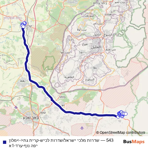543 Bus - שדרות מלכי ישראל/שדרות לכיש-קרית גת<->מלון יפה נוף-ערד-1א